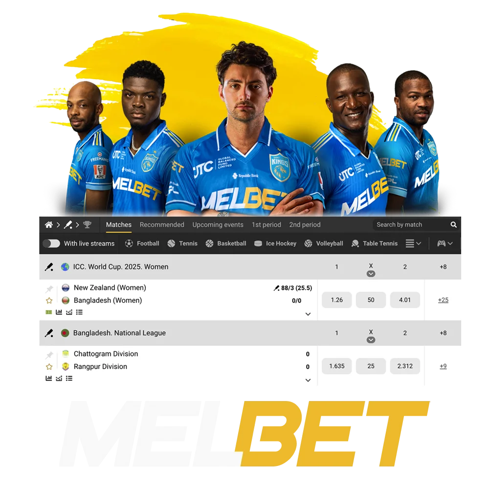 It is not a secret that cricket is one of the most popular sports to bet on in Bangladesh. That competition attracts millions of fans annually, and the hard battles for the champion’s title are pretty exciting to watch. In addition to that, you can spend time with fun by making predictions on the outcomes of cricket events. Therefore, Melbet platform offers you a unique experience of gambling online. Moreover, we can provide you with many exclusive features such as useful promotions, the best security measures, and a wide choice of events for everyday betting with high odds on each match. Register at Melbet right now, make a deposit, and receive a welcome bonus 100% of up to 12,000 BDT to boost your stakes from the start!